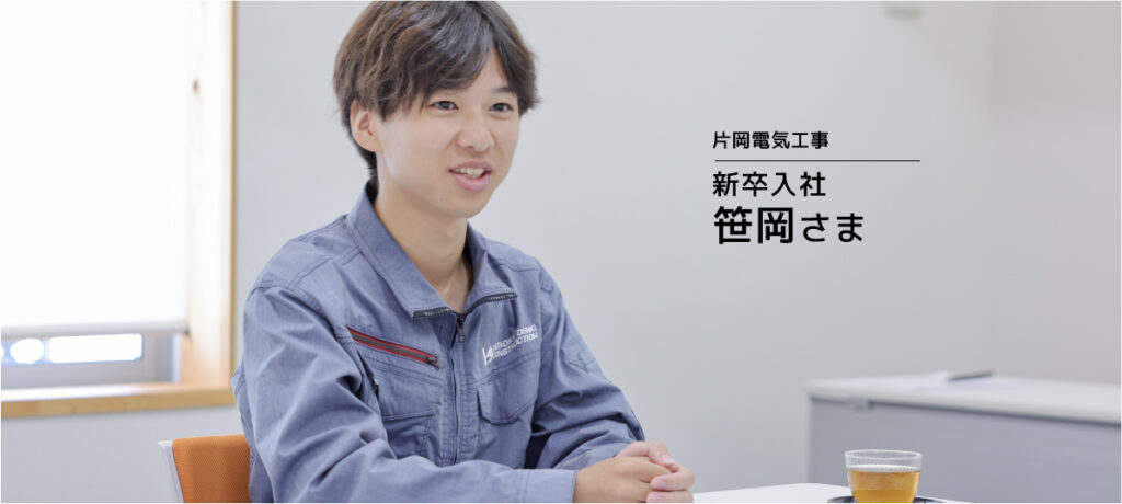 笹岡さまは専門学校を卒業後、2024年に片岡電気工事へ入社されました。